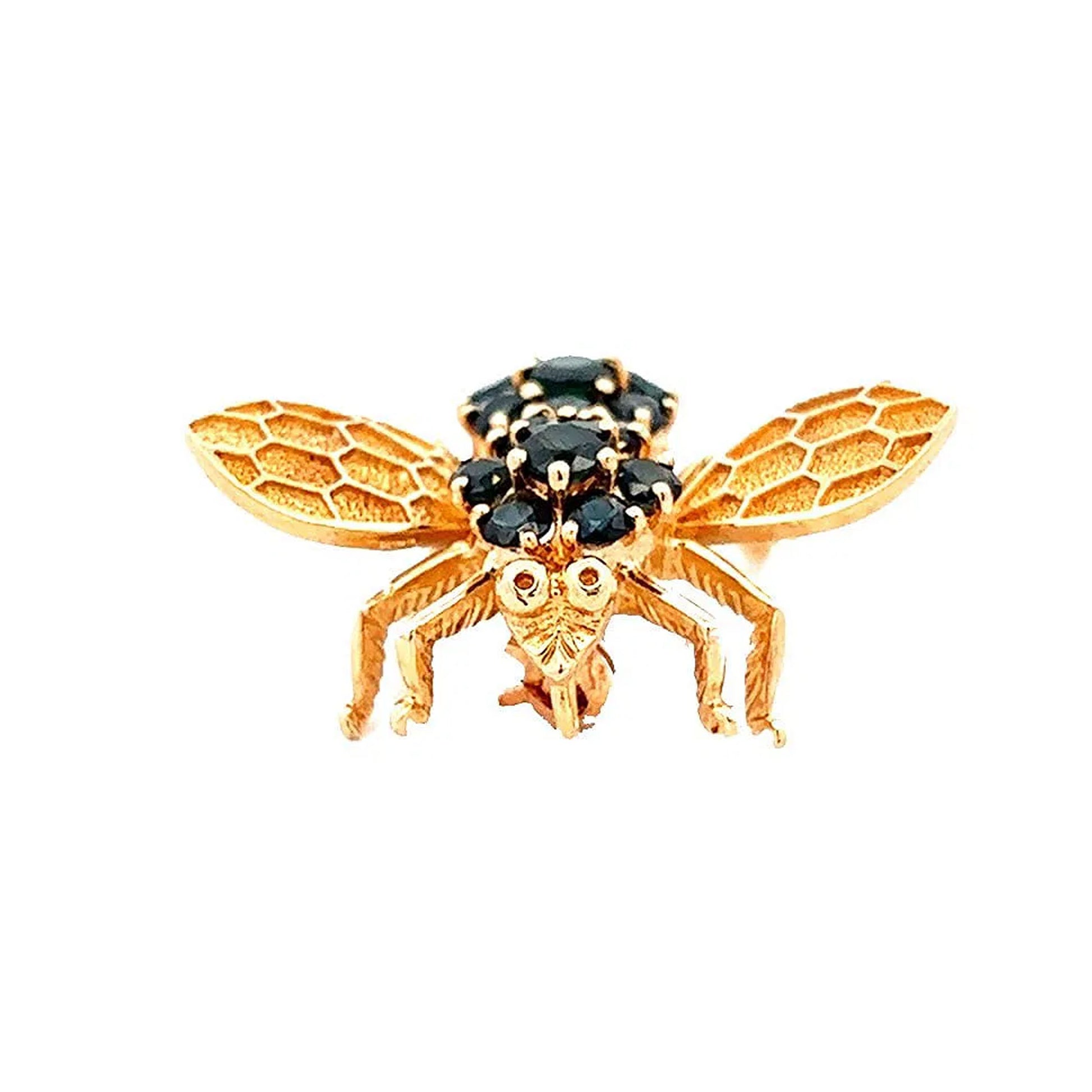 14K yellow gold bumble bee pin or pendant with sapphires. Measures 1-1/4" x 1", Marked 14K, BHK