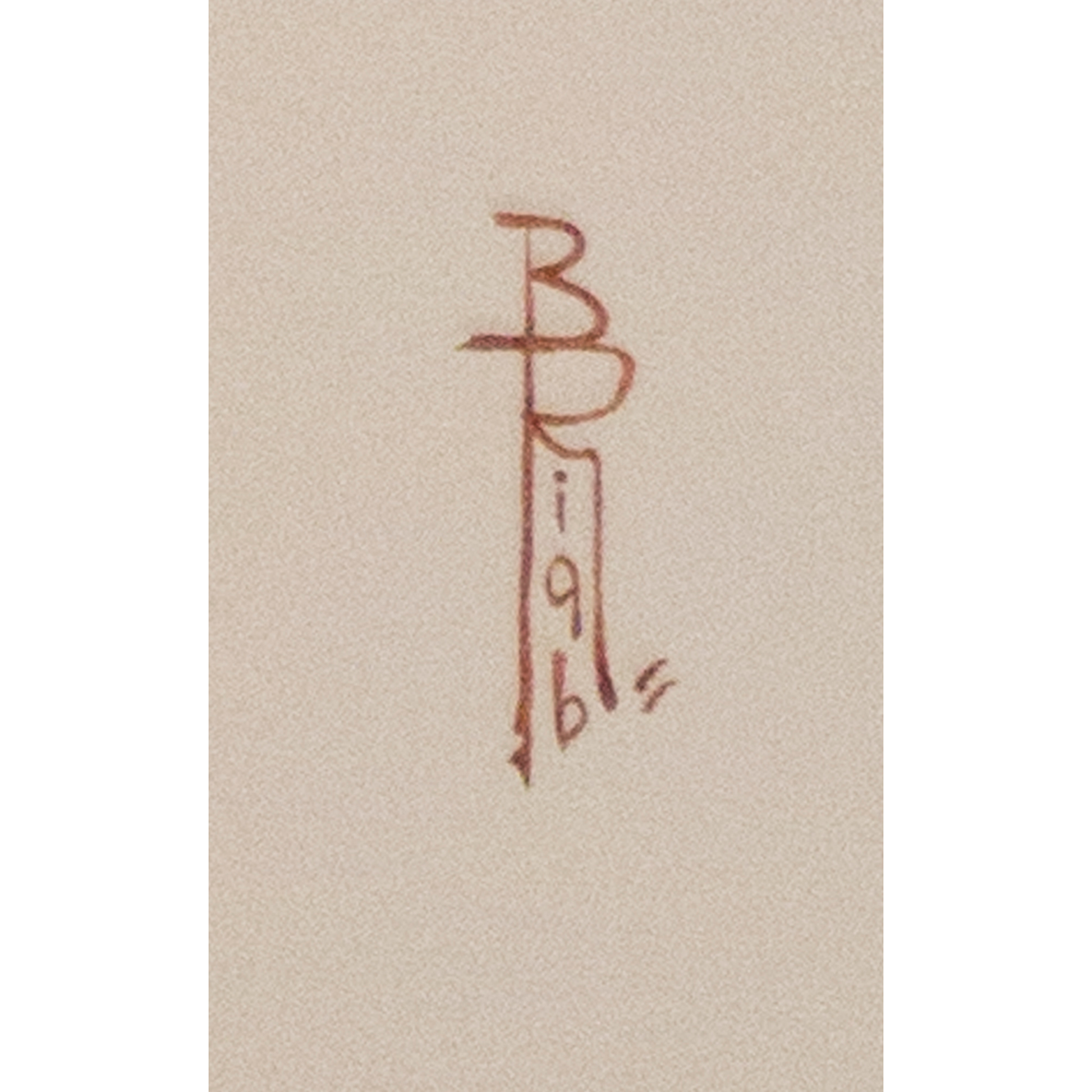 Boris Riab (Russia, United States; 1898 – 1975) is well-known for his hunting genre scenes, with a focus on bird dogs. The hunting scene depicts a cocker spaniel in turned profile, holding a blue-winged teal drake in its mouth. Painting 18 1/2" x 13 1/2" with matting and frame 26 7/8" x 20 5/16".