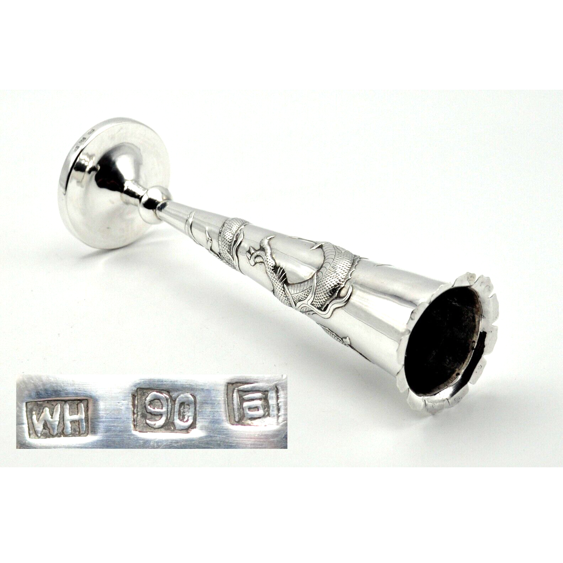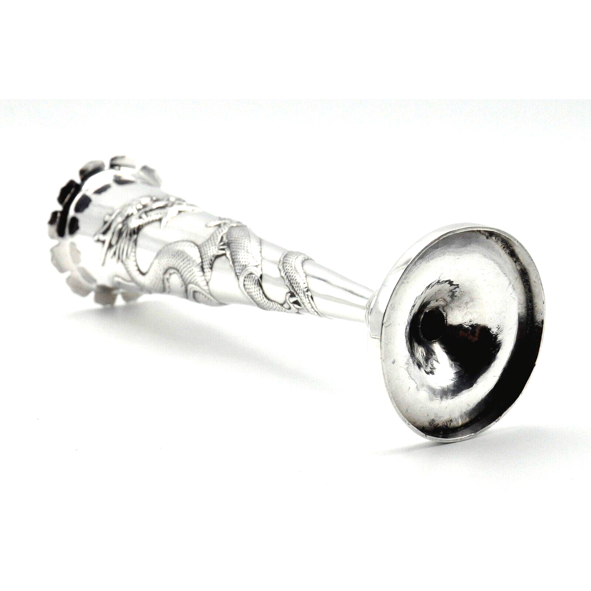 Antique Chinese Export Silver Trumpet Bud Vase Dragon Wang Hing c1890