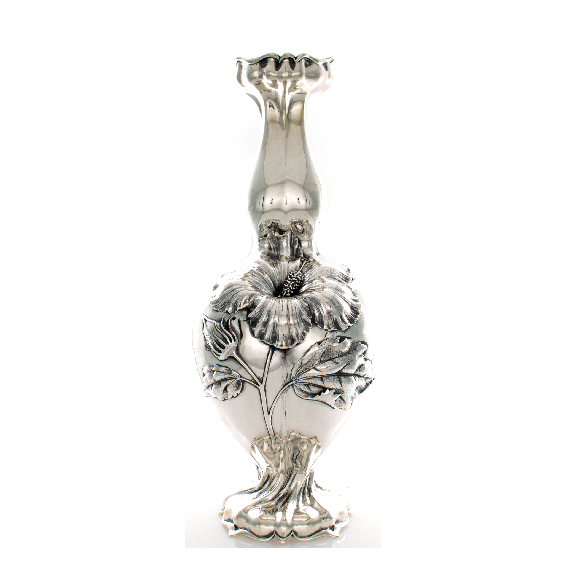 Whiting Sterling Silver Art Nouveau Hibiscus Vase